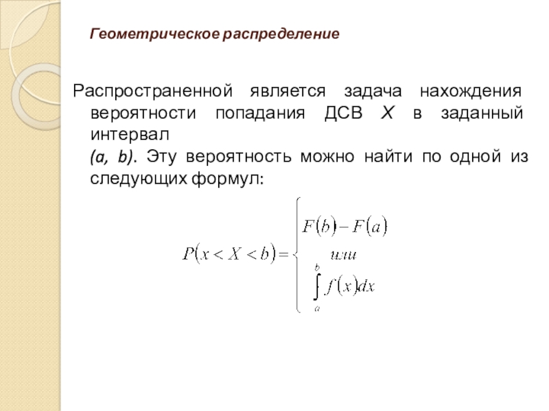 Распространенной является задача нахождения вероятности попадания ДСВ Х в