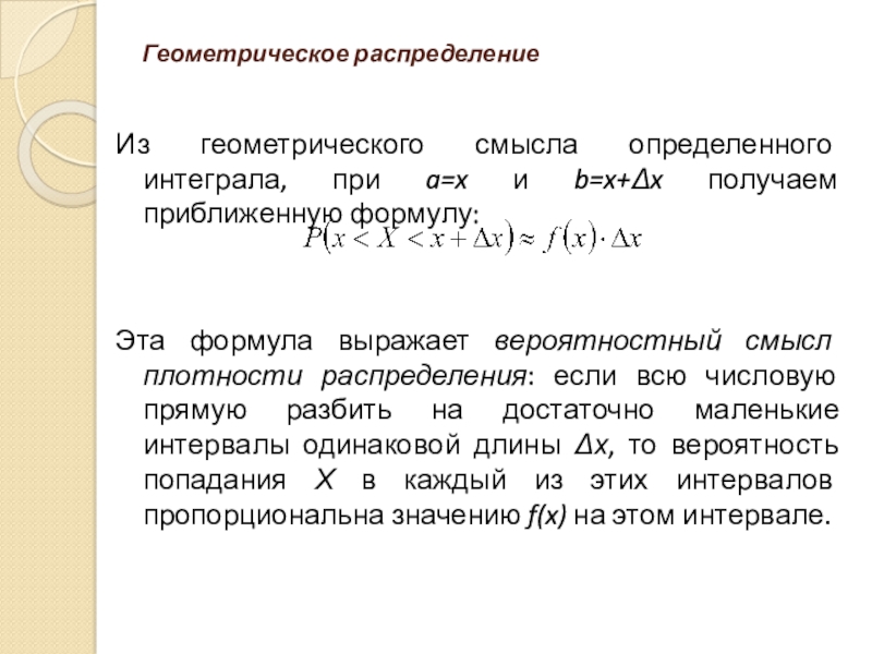 Эта формула выражает вероятностный смысл плотности распределения: если