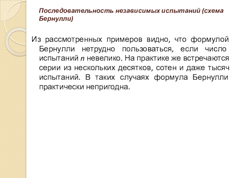 Бернулли нетрудно пользоваться, если число испытаний n невелико. На практике