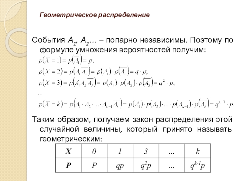 События А1, А2… – попарно независимы. Поэтому по формуле
