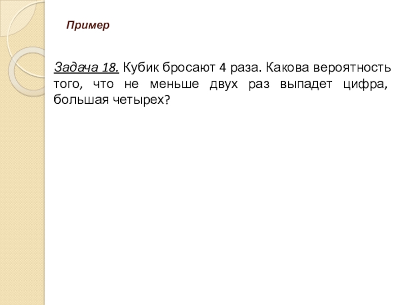Задача 18. Кубик бросают 4 раза. Какова вероятность того, что