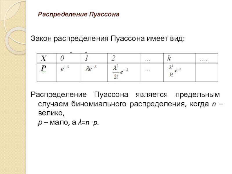 Сделаем важное допущение – произведение n∙р сохраняет постоянное значение: =np. T.е. среднее число появления события в различных сериях из испытаний остается неизменным.