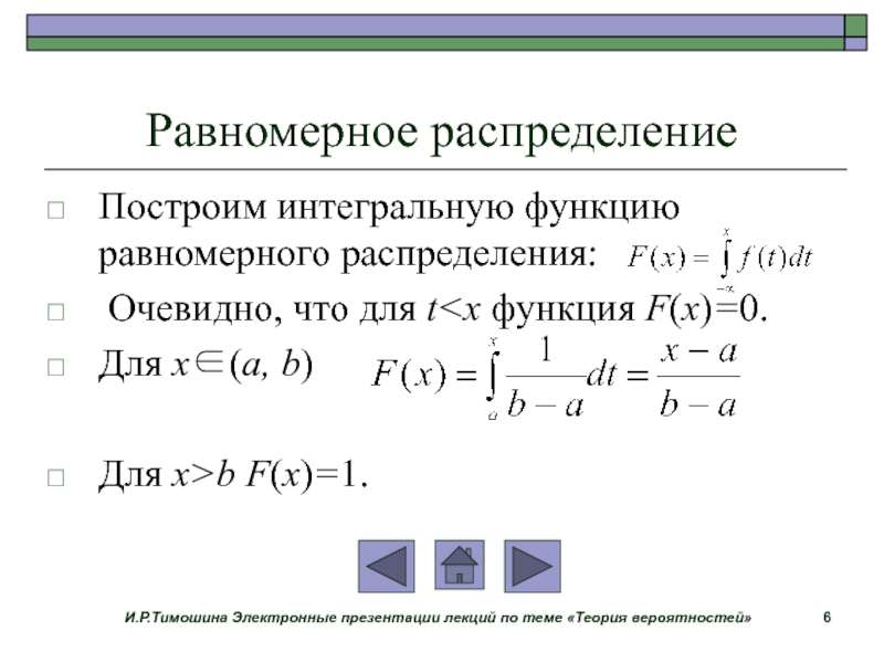 Слайд 6И.Р.Тимошина Электронные презентации лекций по теме «Теория вероятностей»