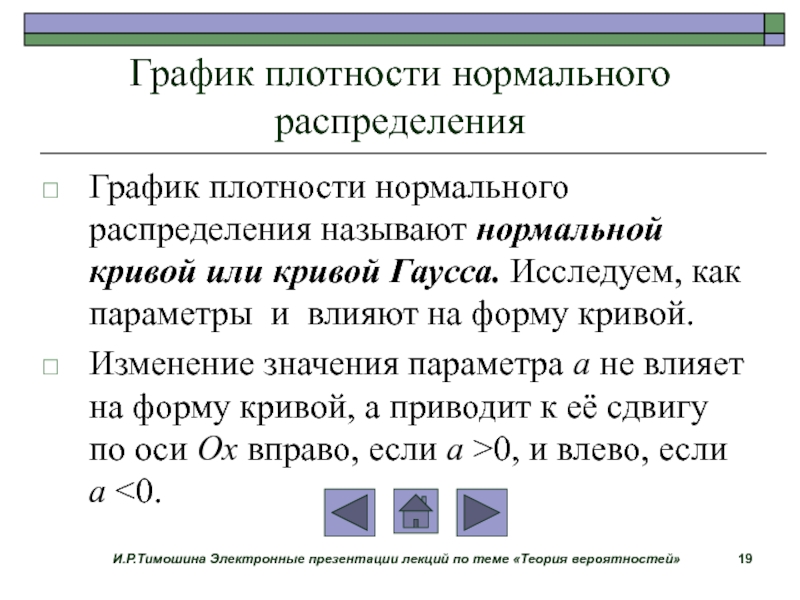 Слайд 19И.Р.Тимошина Электронные презентации лекций по теме «Теория вероятностей»