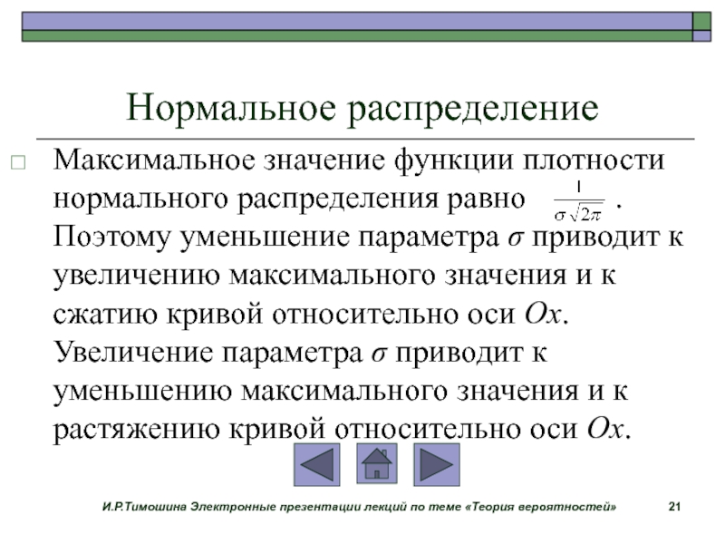 Слайд 21И.Р.Тимошина Электронные презентации лекций по теме «Теория вероятностей»