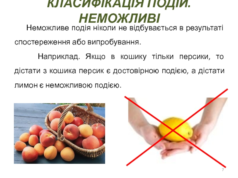 персик є достовірною подією, а дістати лимон є неможливою подією.
