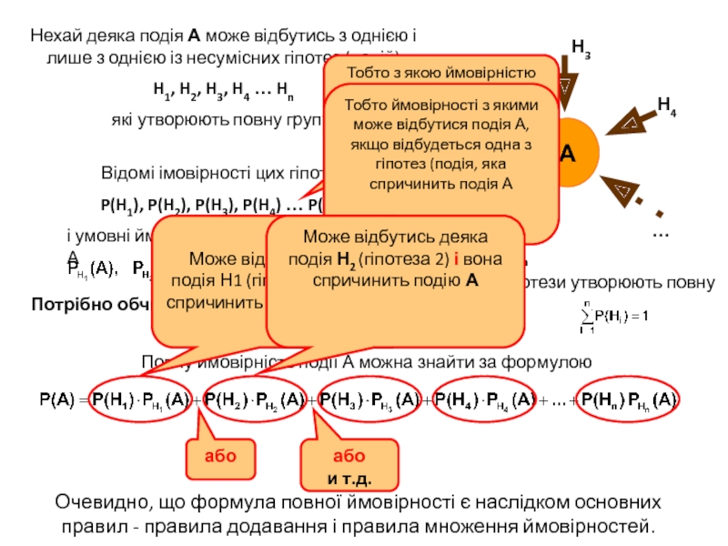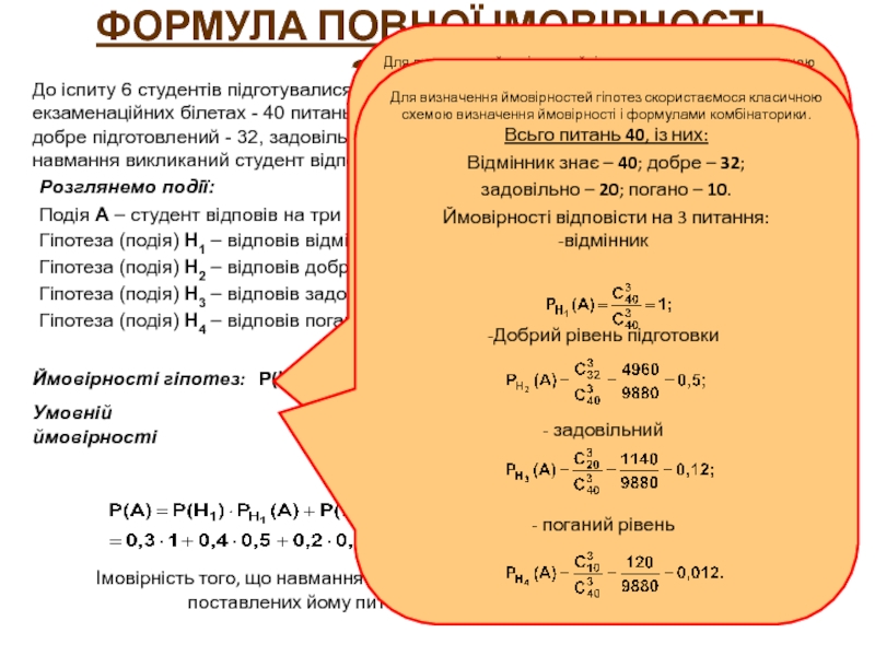 Слайд 52Знайдемо ймовірність події А за формулою повної ймовірності: