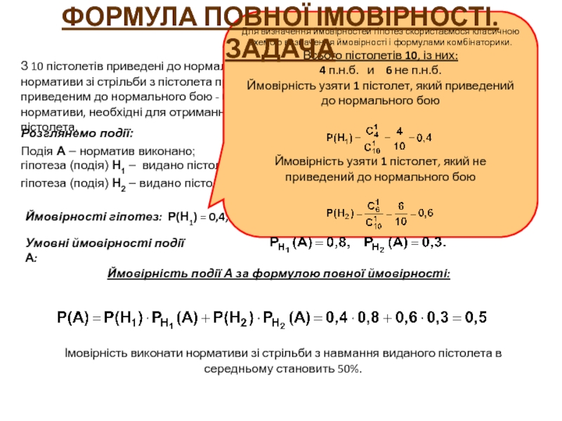 ФОРМУЛА ПОВНОЇ ІМОВІРНОСТІ. ЗАДАЧА