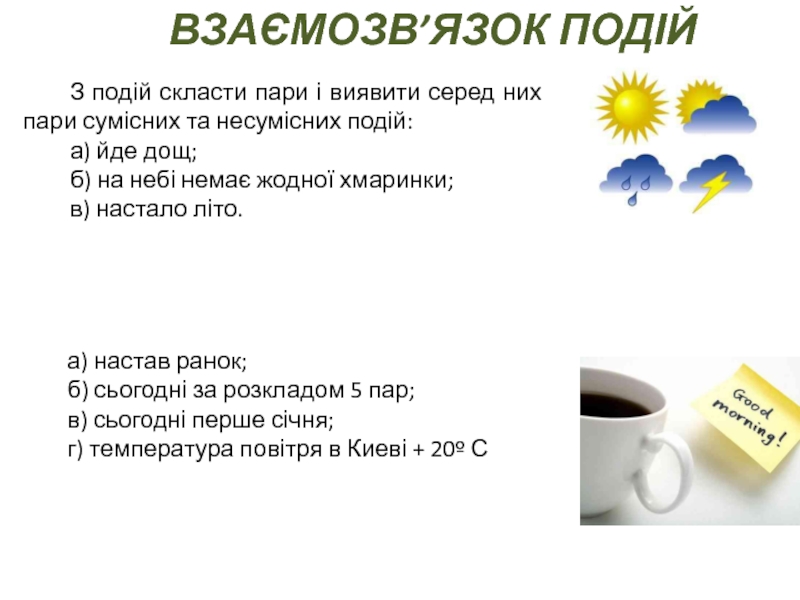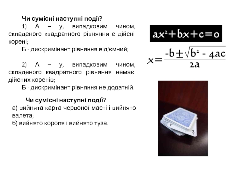 Слайд 11Вкажіть які з описаних пар подій є сумісними, а які