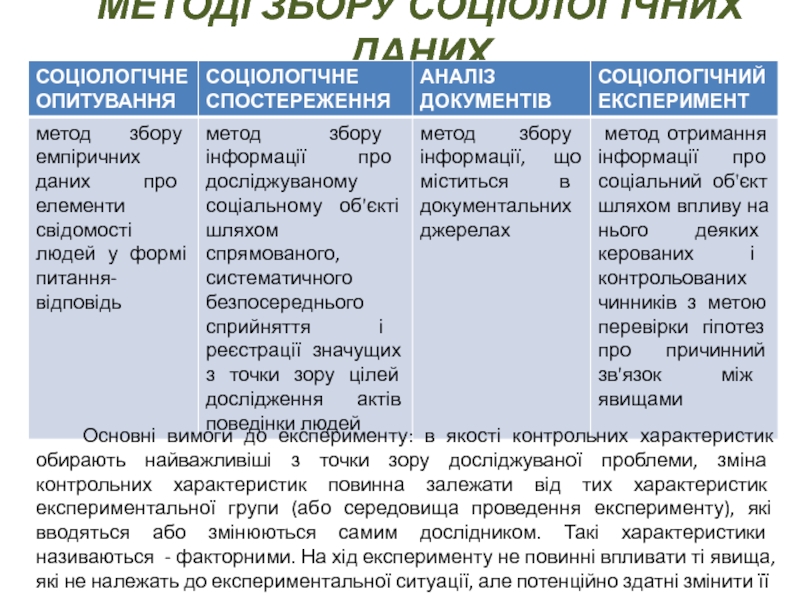 Слайд 16МЕТОДІ ЗБОРУ СОЦІОЛОГІЧНИХ ДАНИХ