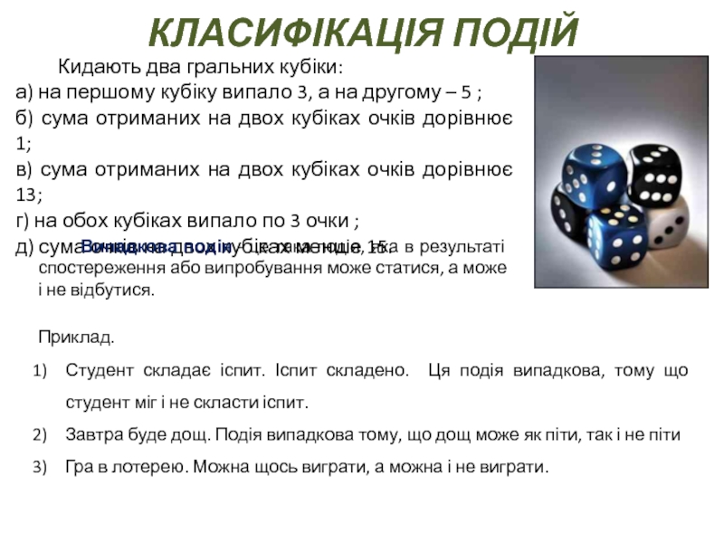 КЛАСИФІКАЦІЯ ПОДІЙ. НЕМОЖЛИВІ