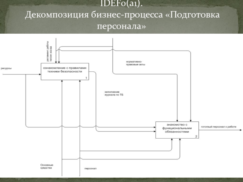 Слайд 5IDEF0(a1). Декомпозиция бизнес-процесса «Подготовка персонала»