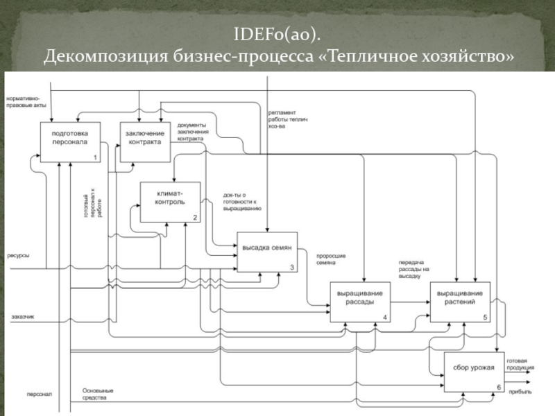 Слайд 4IDEF0(a0). Декомпозиция бизнес-процесса «Тепличное хозяйство»