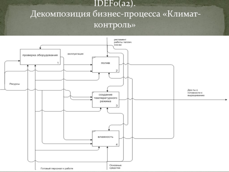 Слайд 7IDEF0(a2). Декомпозиция бизнес-процесса «Климат-контроль»