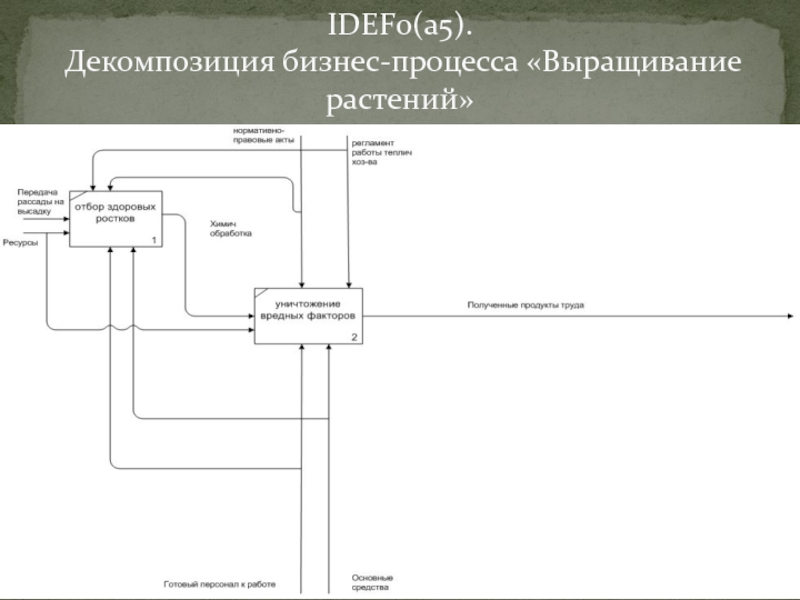 Слайд 11IDEF0(a5). Декомпозиция бизнес-процесса «Выращивание растений»