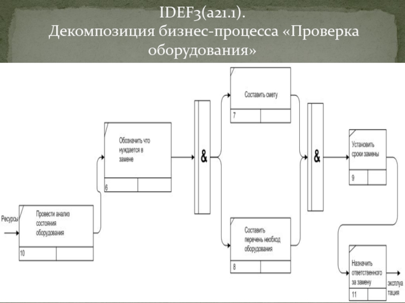 Слайд 8IDEF3(a21.1). Декомпозиция бизнес-процесса «Проверка оборудования»
