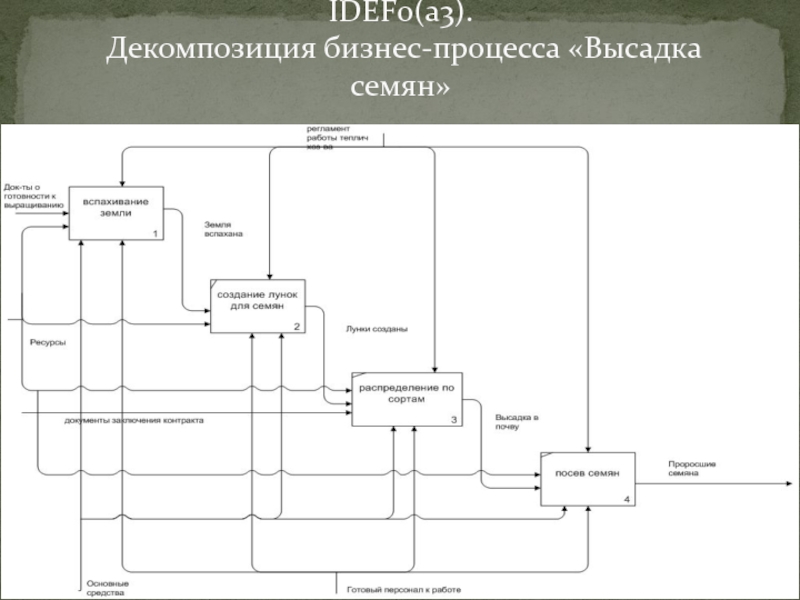 Слайд 9IDEF0(a3). Декомпозиция бизнес-процесса «Высадка семян»