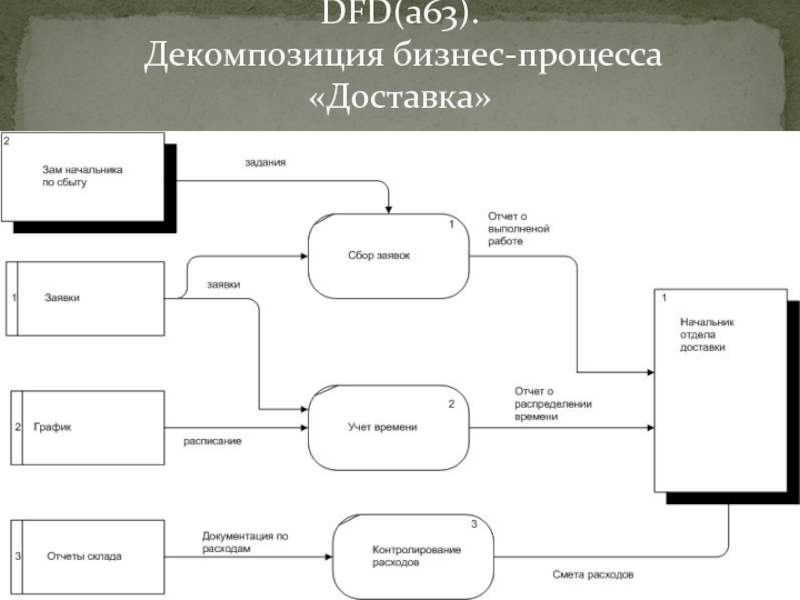 Слайд 13DFD(a63). Декомпозиция бизнес-процесса «Доставка»