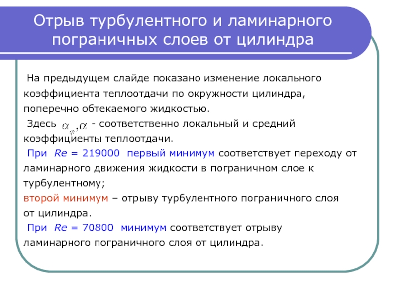 а) отрыв ламинарного пограничного слоя при ;