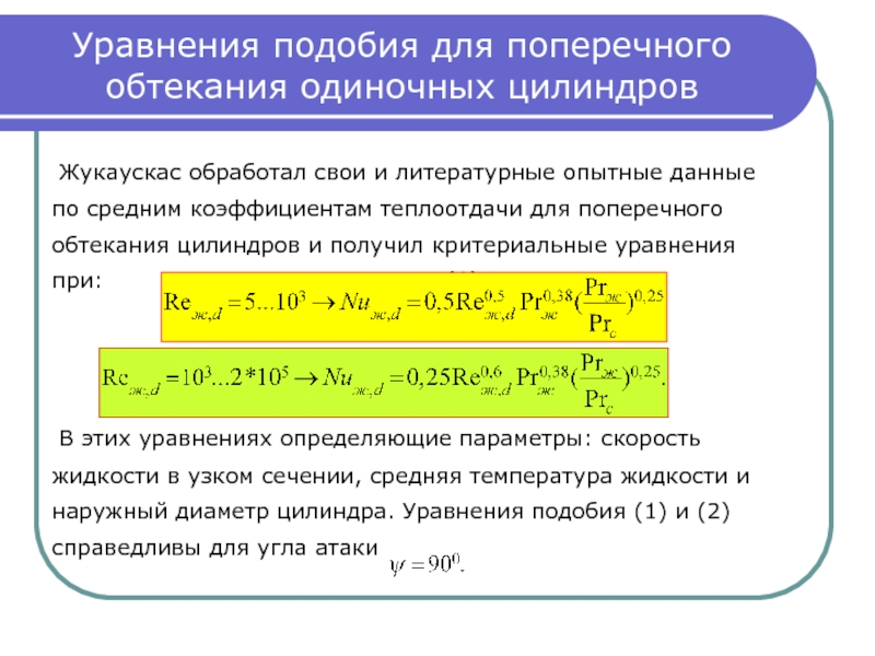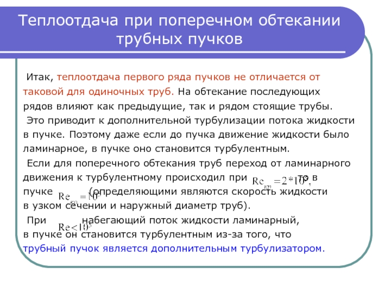 а за характерный линейный размер – наружный диаметр трубы d , то безотрывное обтекание будет
