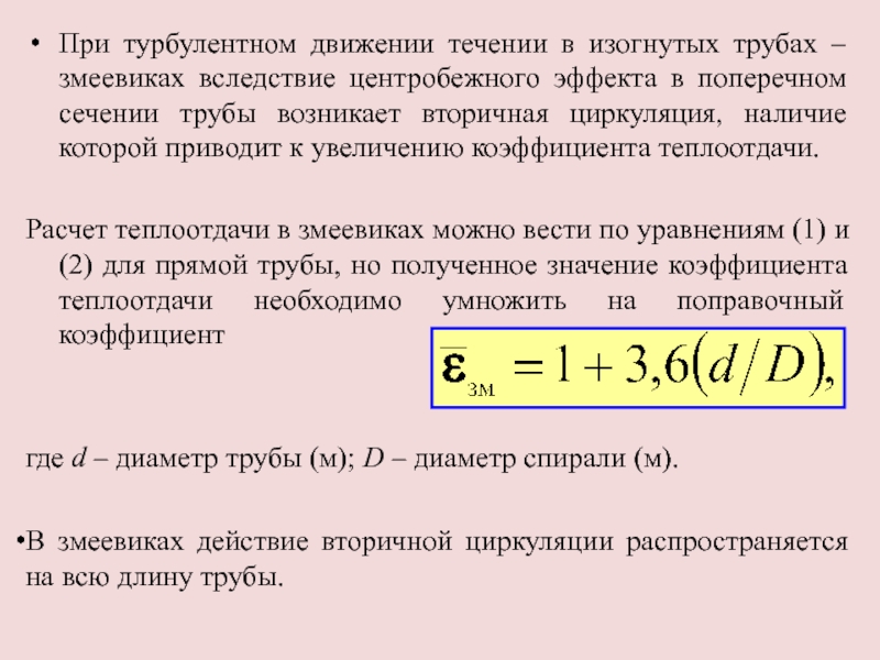 Слайд 27При турбулентном движении течении в изогнутых трубах – змеевиках вследствие