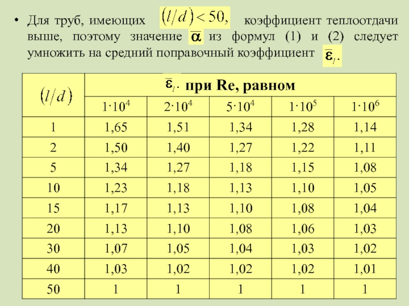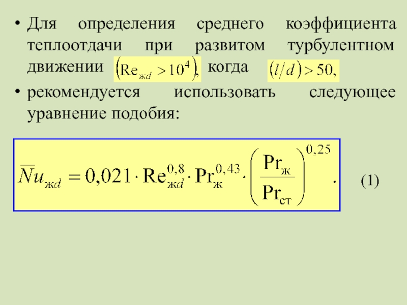 Слайд 24Для определения среднего коэффициента теплоотдачи при развитом турбулентном движении