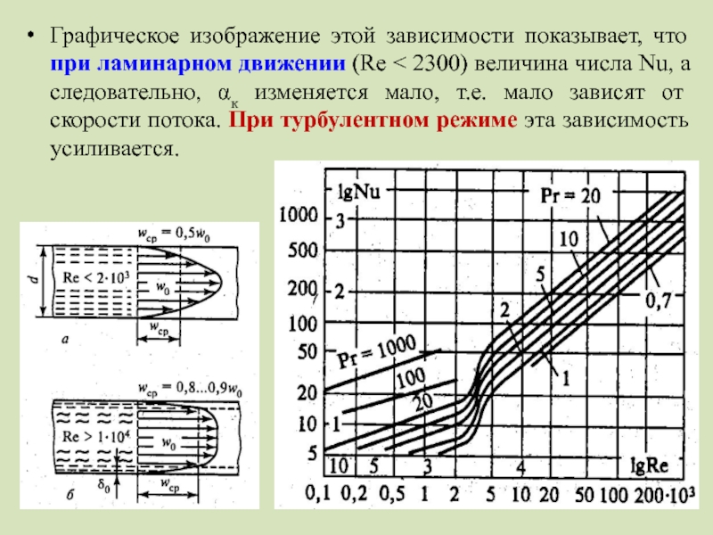 Слайд 6Графическое изображение этой зависимости показывает, что при ламинарном движении (Re