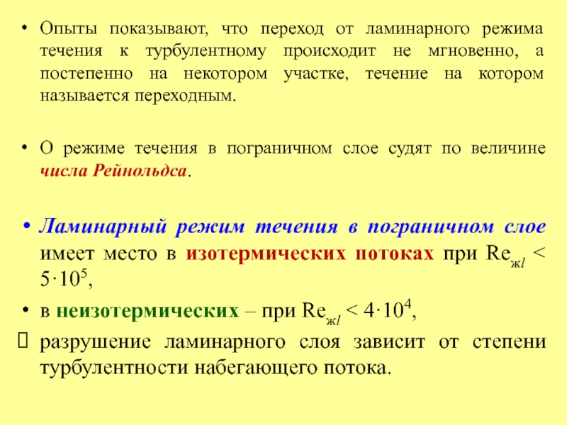 Ламинарный режим течения в пограничном слое имеет место в изотермических потоках при Reжl < 5·105,