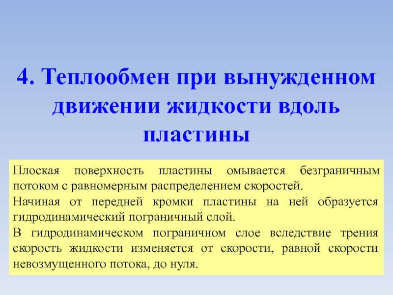 Слайд 284. Теплообмен при вынужденном движении жидкости вдоль пластины