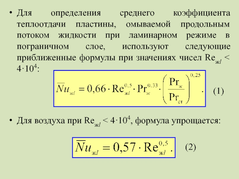 Слайд 33Для определения среднего коэффициента теплоотдачи пластины, омываемой продольным потоком жидкости