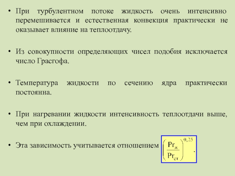 Слайд 23При турбулентном потоке жидкость очень интенсивно перемешивается и естественная конвекция