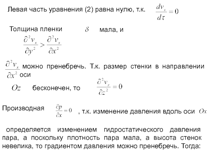 и левая часть уравнения (1) равна нулю. Пусть трение на границе фаз отсутствует, температура внешней поверхности пленки постоянна и равна температуре насыщения, физические параметры конденсата не зависят от температуры.
