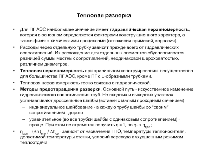 Нетождественность трубок поверхности теплообмена в отношении приращения энтальпии среды называют тепловой разверкой: