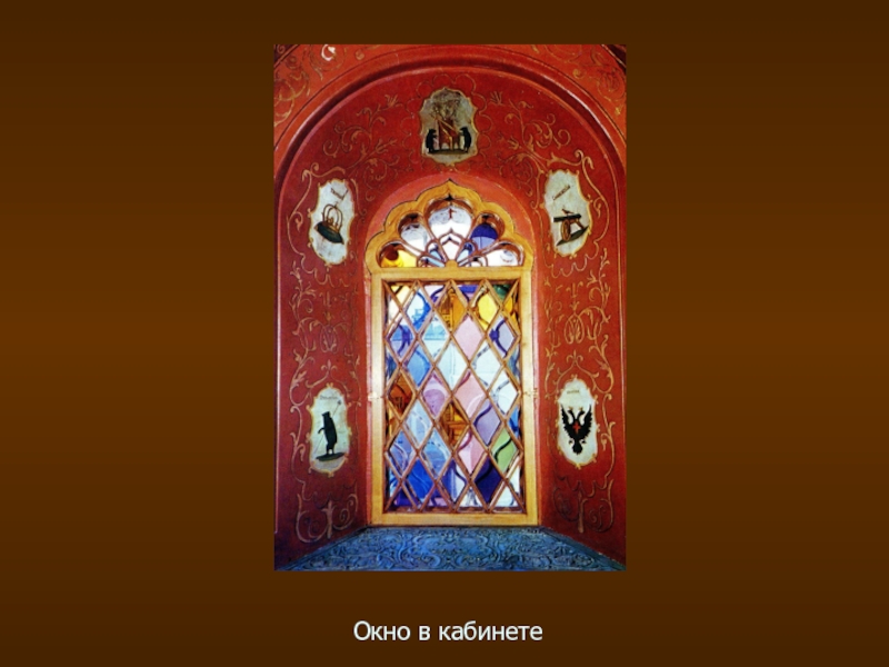 окна были вставлены узорчатые слюдяные оконницы красного, сиреневого, золотистого, зеленого цвета, отбрасывающие в солнечные дни причудливые разноцветные блики на полы, предметы, обстановку