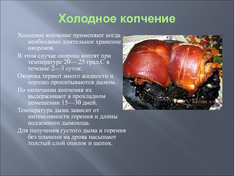 Холодное копчение применяют когда необходимо длительное хранение окороков.