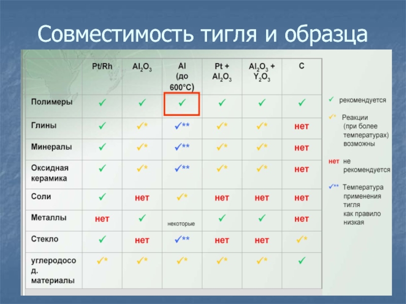 Теплофизические параметры эталона – теплоемкость и теплопроводность должны быть по возможности близкими таковым анализируемого материала;