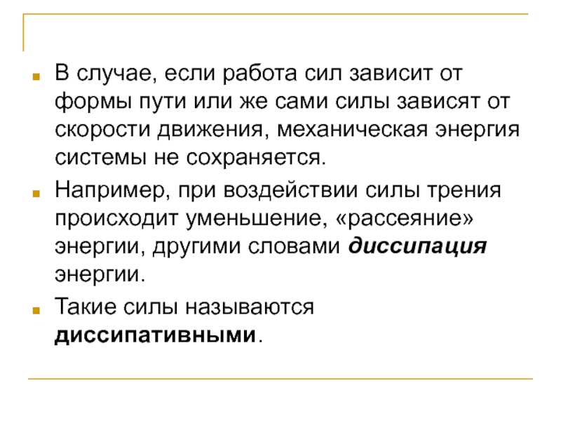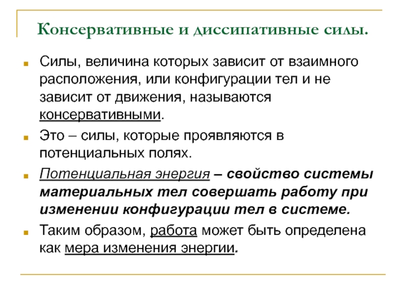 Слайд 13Консервативные и диссипативные силы.