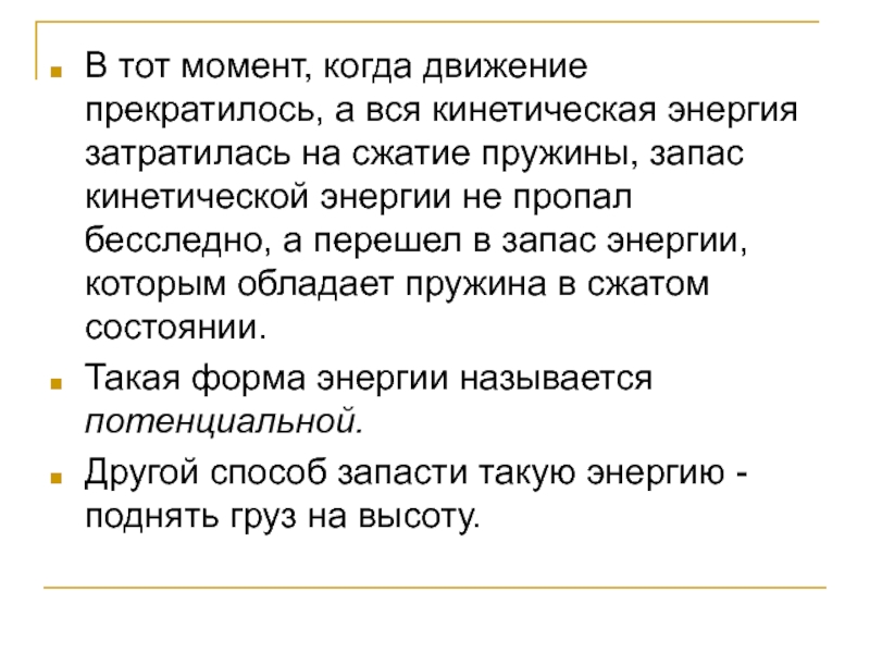Слайд 11В тот момент, когда движение прекратилось, а вся кинетическая энергия