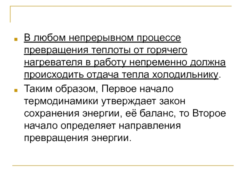 Слайд 27В любом непрерывном процессе превращения теплоты от горячего нагревателя в