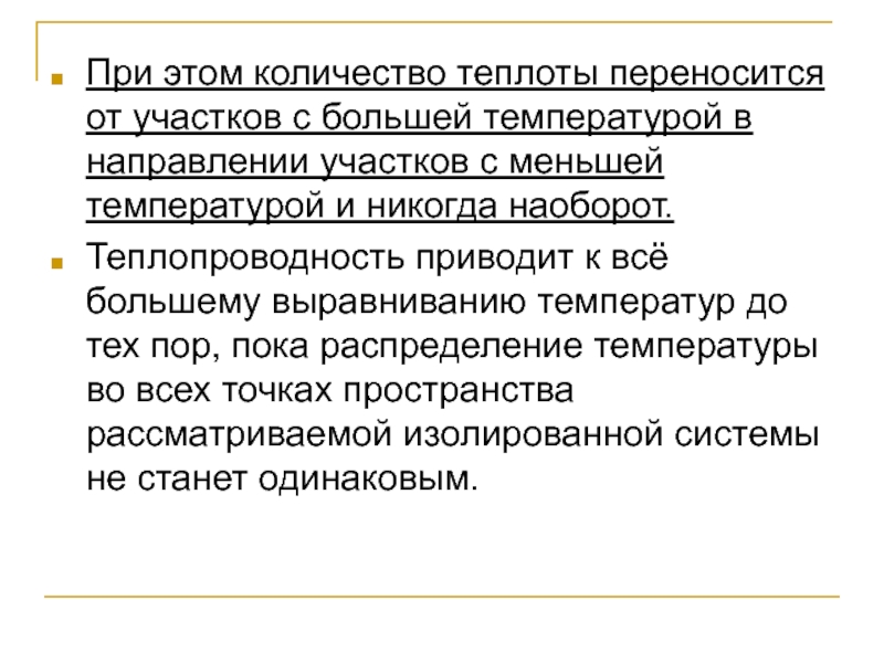 к всё большему выравниванию температур до тех пор, пока распределение температуры во всех точках пространства рассматриваемой изолированной системы не станет одинаковым.