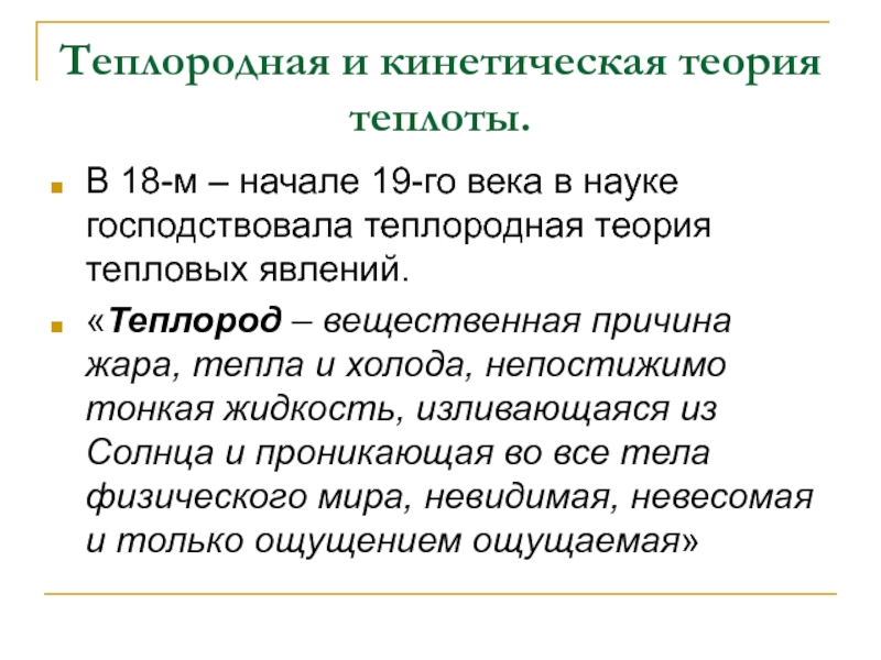 Слайд 16Теплородная и кинетическая теория теплоты.