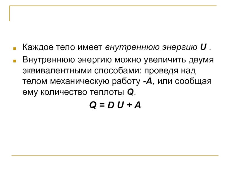 Слайд 22Каждое тело имеет внутреннюю энергию U .
