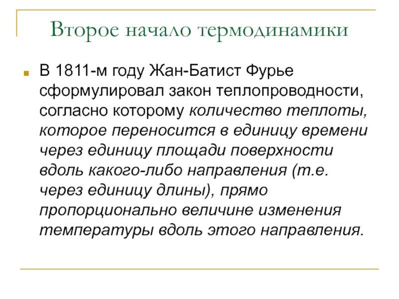 В 1811-м году Жан-Батист Фурье сформулировал закон теплопроводности,