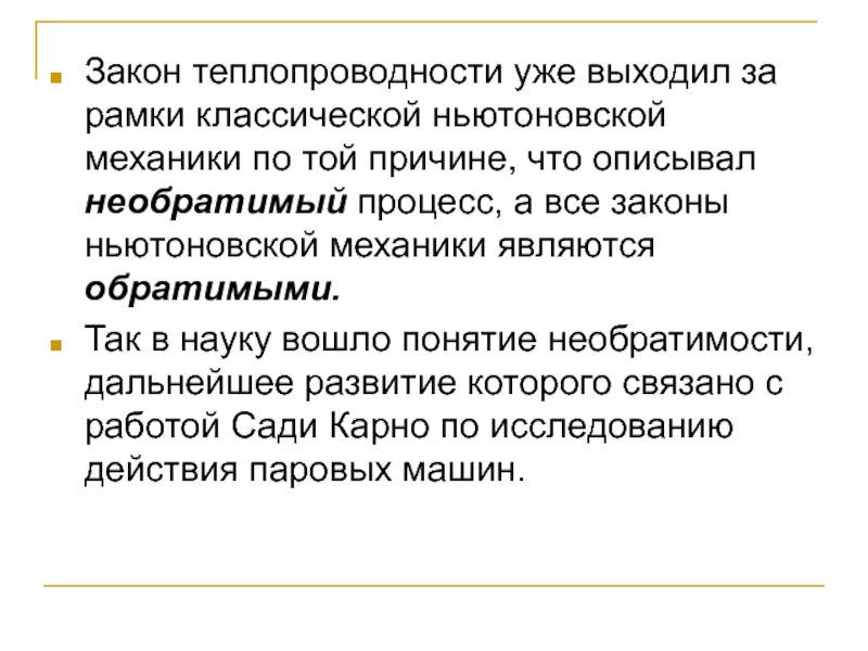 той причине, что описывал необратимый процесс, а все законы ньютоновской