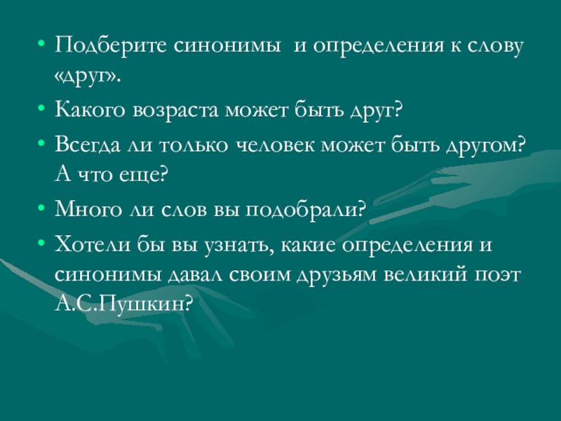Хотели бы вы узнать, какие определения и синонимы давал своим друзьям великий поэт А.С.Пушкин?