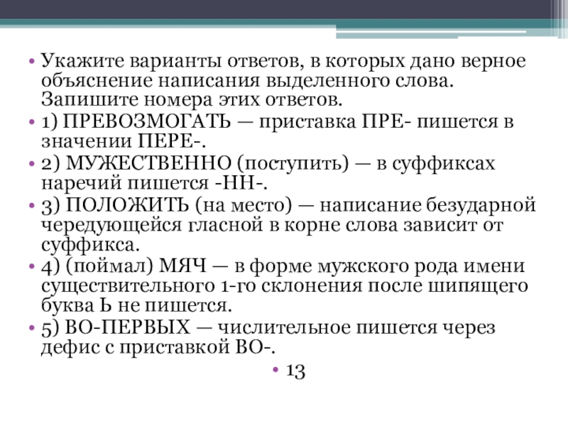 Слайд 19Укажите варианты ответов, в которых дано верное объяснение написания выделенного