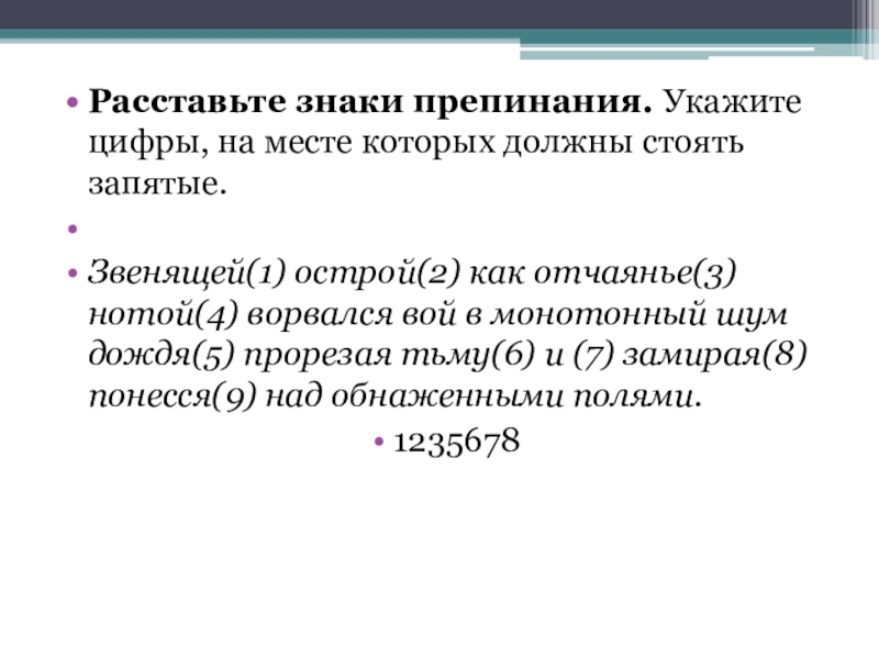 Слайд 8Расставьте знаки препинания. Укажите цифры, на месте которых должны стоять запятые.