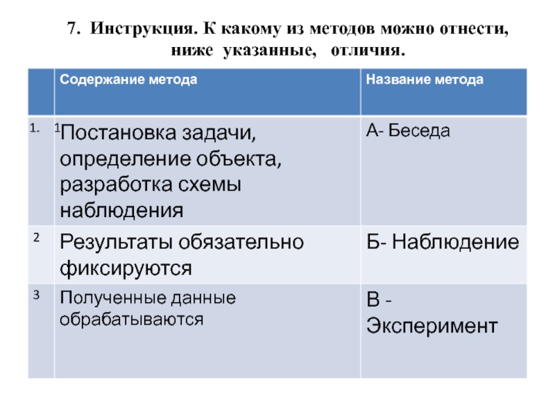 7. Инструкция. К какому из методов можно отнести, ниже указанные,  отличия.