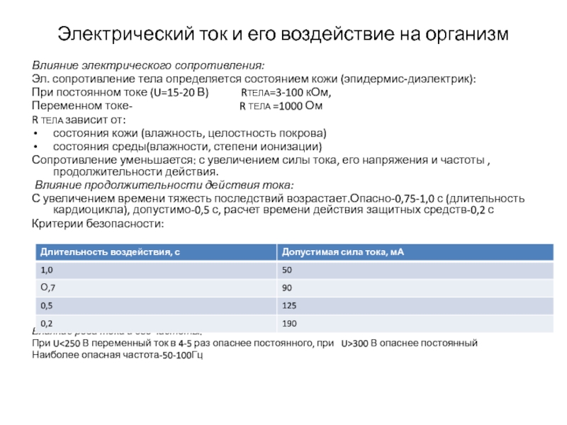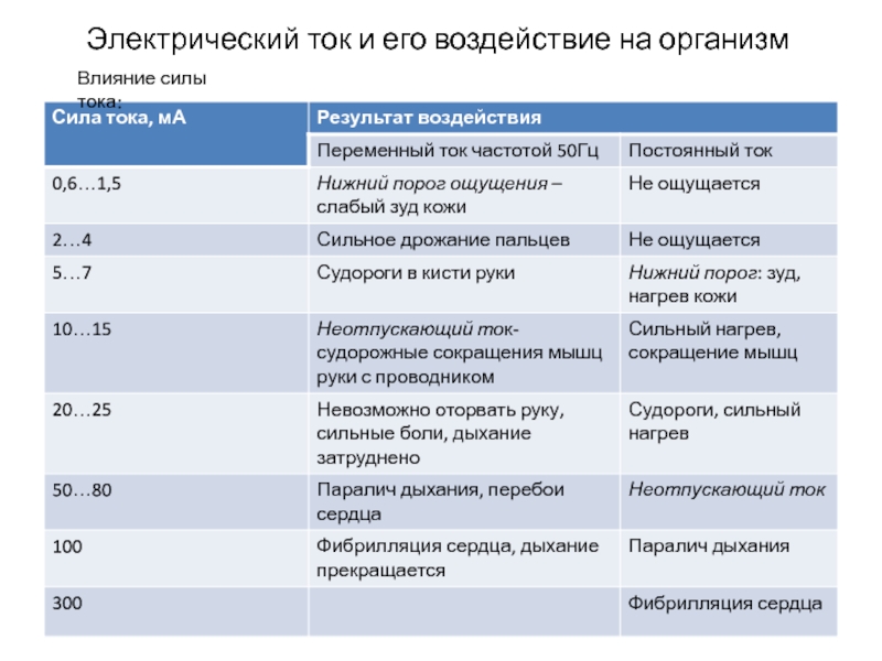 Слайд 8Электрический ток и его воздействие на организм