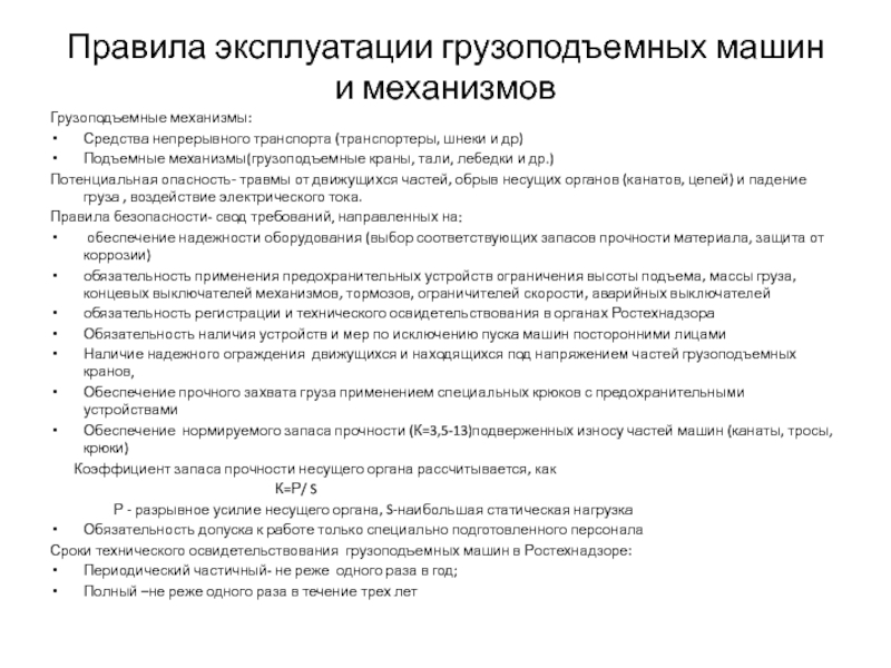 Слайд 20Правила эксплуатации грузоподъемных машин и механизмов